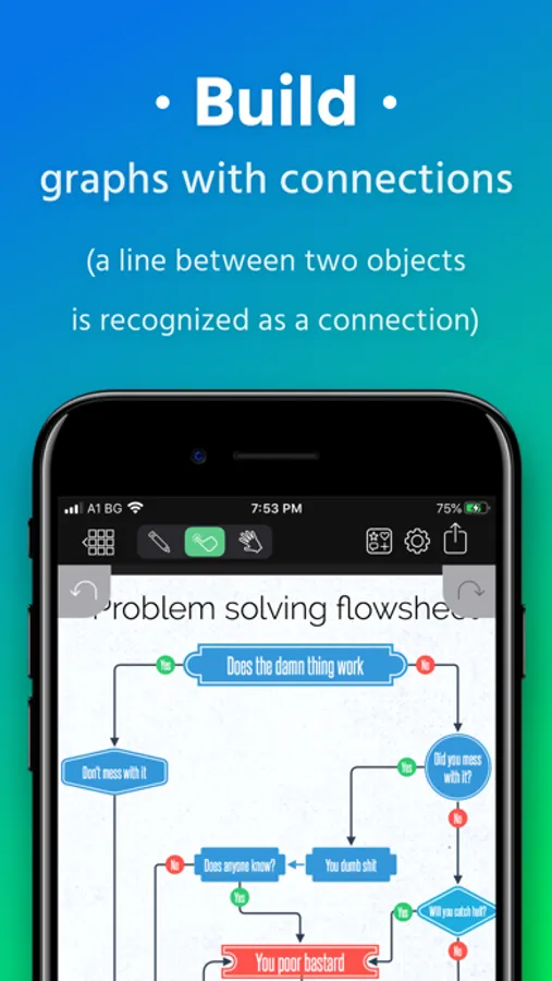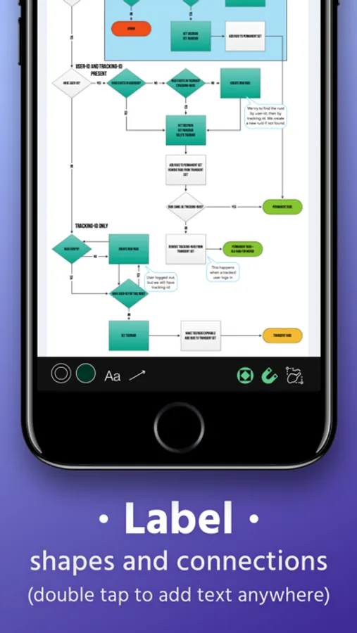 The shapes you draw are automatically closed and straightened, all basic shapes are instantly recognized. The lines you draw between shapes are automatically turned into connections thanks to our shape recognition magic.
