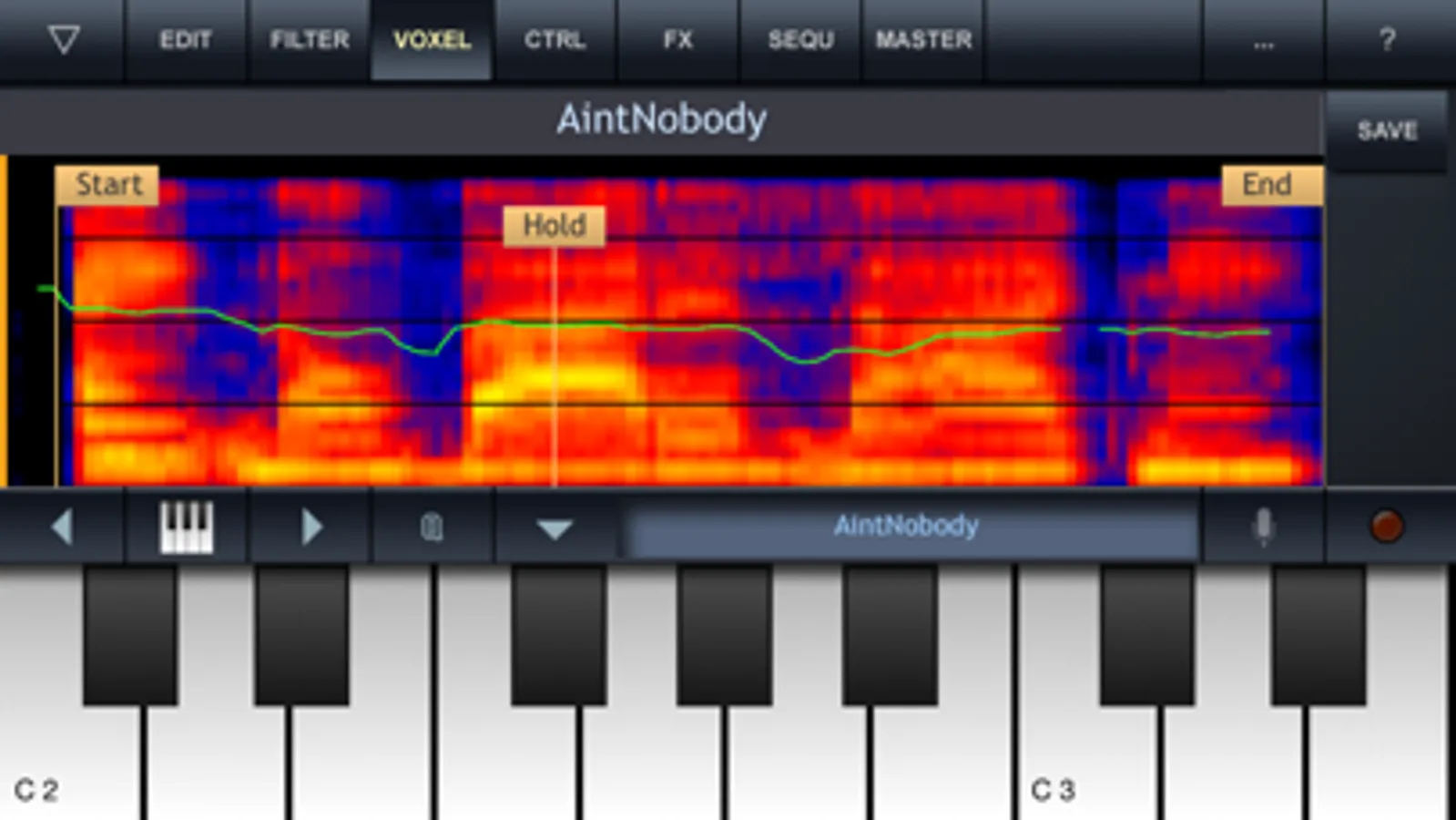 • Play your vocoded voice live on keyboard. Drag for slides and vibrato.