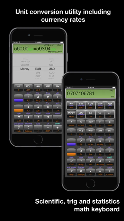 •Conversions- 47 world currency rates and over 100 commonly used metric, english and other conversion factors used in financial, business, scientific and engineering calculations.