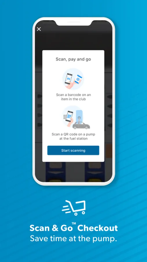 Now you can pay for gas with the Scan & Go™ feature to save time at the pump. In the club, shop contact free and skip the checkout line. Just shop, scan and pay, all in the app.