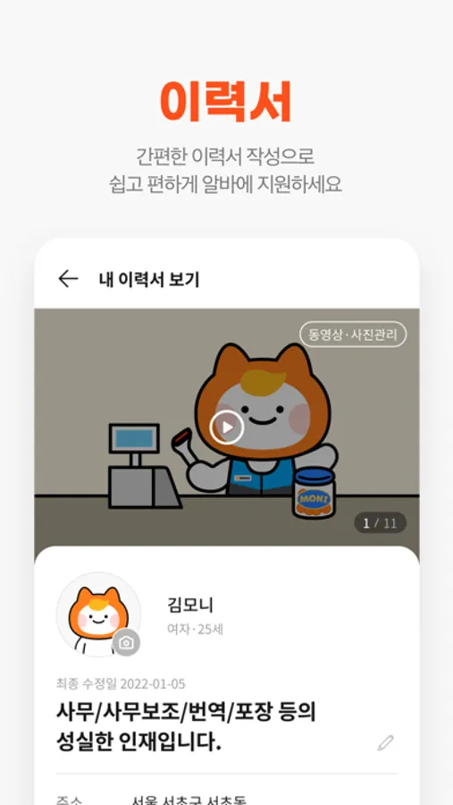 - 다년간의 노하우로 무장된 알바몬만의 특별한 이력서를 이제 앱에서도 작성할 수 있어요!