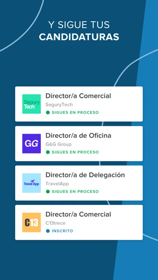 Con nuestra app podrás tener una visión general de lo que está pasando con todas tus candidaturas, gestionarlas y focalizarte en las que realmente te interesan. Si hay un oportunidad te echamos todas las manos que tenemos para que la aproveches.