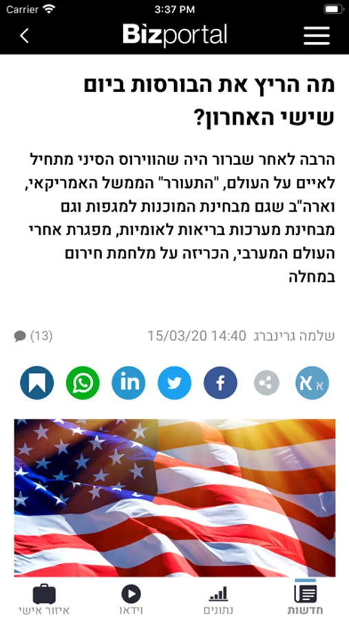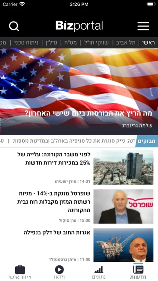 Bizportal's news desk goal is to offer independent and reliable, real time market news. Using the application you will be exposed to articles, news alerts, overviews, in-depth analysis and video articles all targeting relevant financial markets.