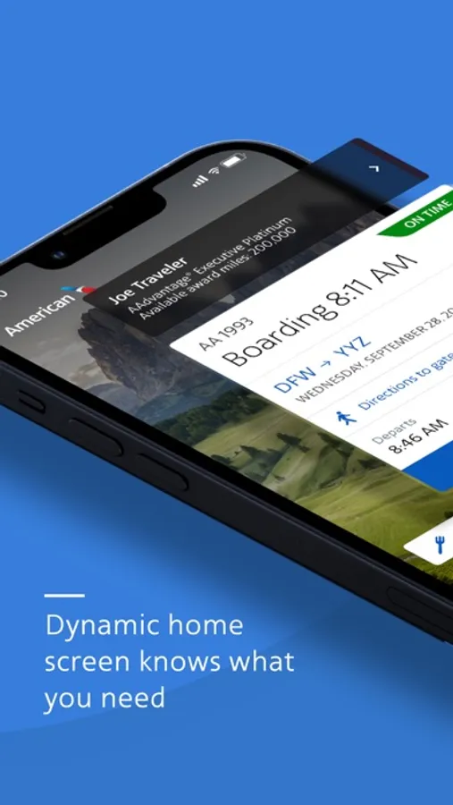 - Personalized home screen: See your next trip, AAdvantage® status, miles and Loyalty Points.