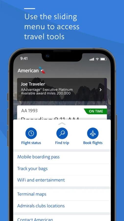 - Wi-Fi access in the air: Don’t forget, on flights with Wi-Fi you can use the American app and aa.com at no cost.