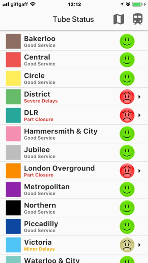 Clear graphics immediately show which lines have delays. Selecting the line gives the specific reason for the delay, allowing you to re-plan your journey.
