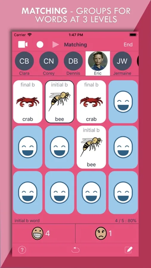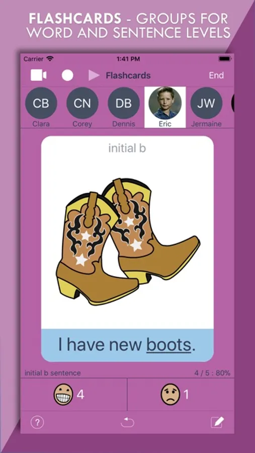 ArtikPix is an engaging articulation app with flashcard and matching activities for children with speech sound delays. Among the many features in ArtikPix, group scoring is available with an unlimited number of students per group in the flashcard and matching activities. Scores can be collected as students practice sounds in words and sentences.