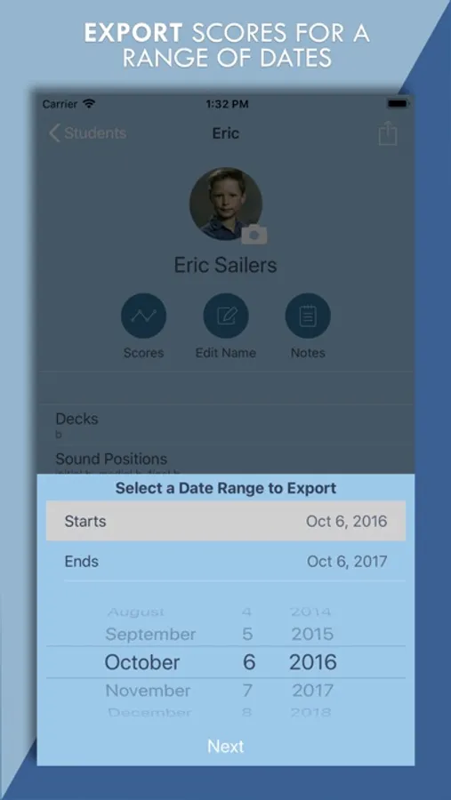 • Export student data for a range of dates to report progress during a period of time