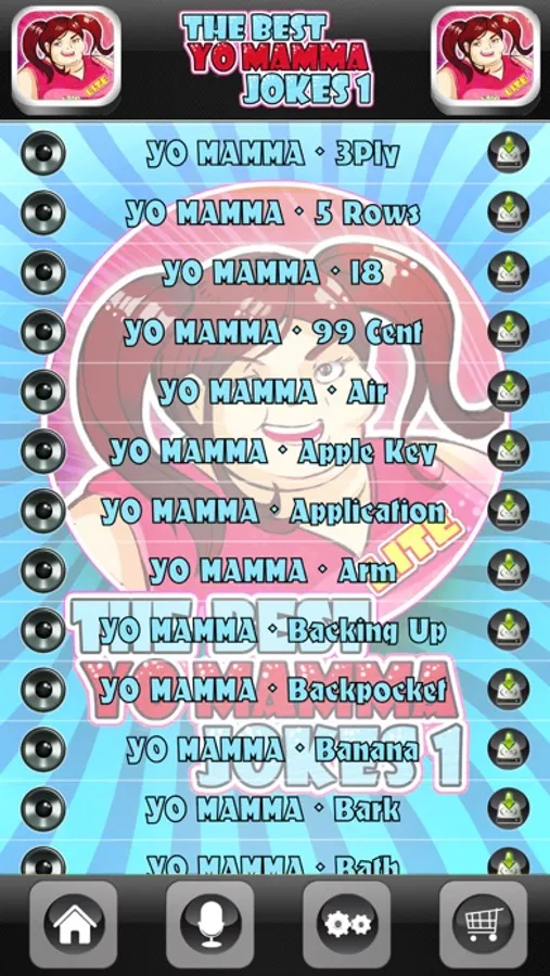 Funny "YO MAMMA..." interface to listen to the jokes.