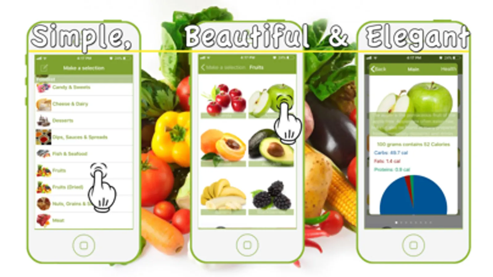 Vitamins 101 has a massive database which contains lists of food products (fruits, vegetables, meat, nuts, fish, beans, dairy, bread, pasta, rice, cereals, drinks, spices, herbs and more).