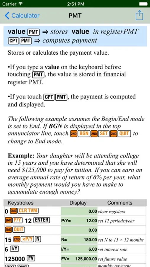 The calculator has been optimized for viewing on iPhones and iPads. All time value of money variables are continuously displayed to give you confidence in your problem setups.