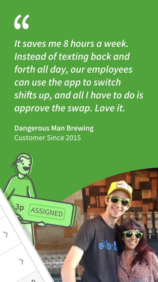 • Confident shift coverage - Receive shift confirmations from employees and be notified immediately of swaps and drops.