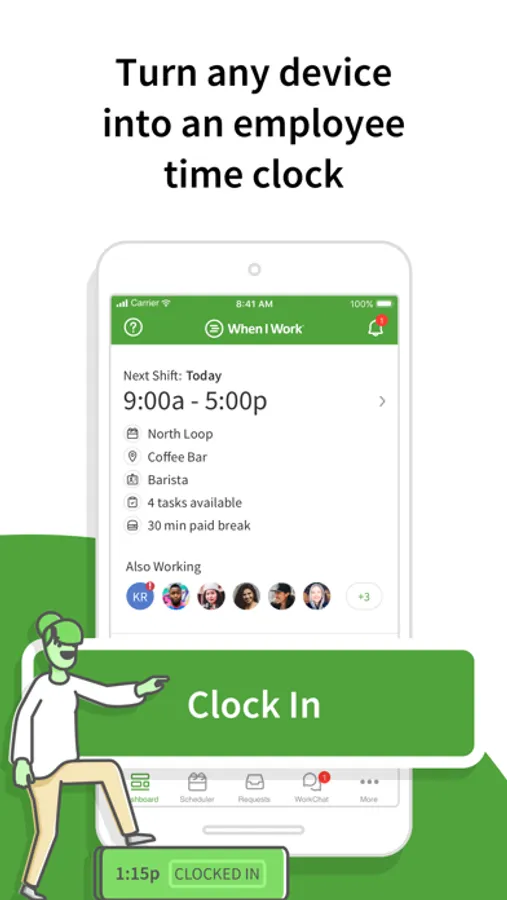 Join more than 200,000 workplaces running on When I Work to reduce chaos, costs, and turnover with employee scheduling and time tracking for the modern workforce. When I Work is an employee scheduling app that does more than just save you time on scheduling. It also helps you improve communication, eliminate excuses, boost accountability among your staff, track time and attendance, and grow your business.