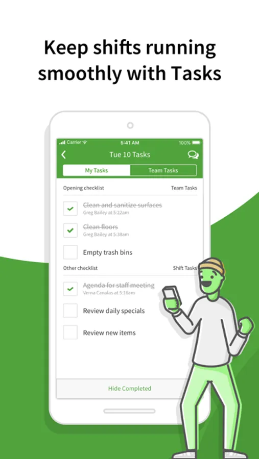 • Team accountability - Shift confirmation, mobile clock in, shift task lists, team task lists, and chat ensure everyone is on the same page.