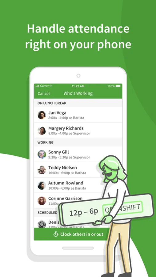 • Team management - Onboard new employees, approve time off requests, review shift trades, and fill shifts in seconds.