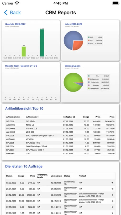 The solution supports the user in the digital acquisition of orders, visit reports and provides current and former information concerning customers and prospective