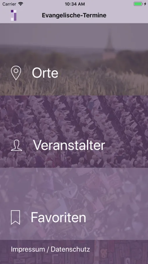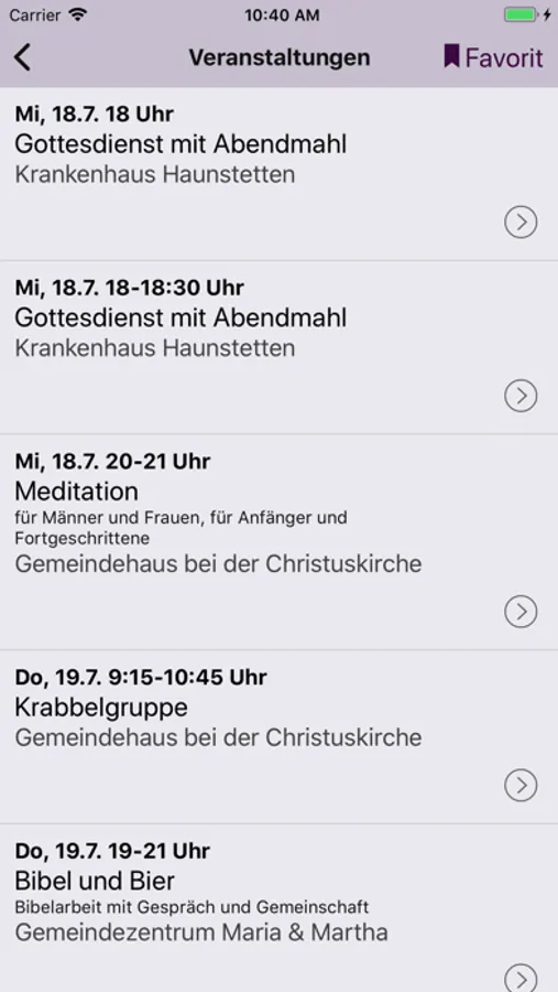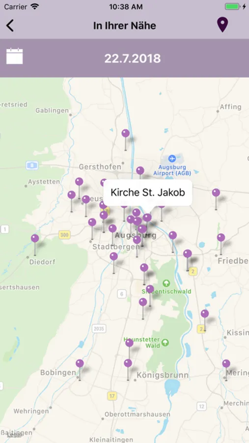 Über eine Kartendarstellungen werden die Veranstaltungen in Ihrer Nähe angezeigt. Wahlweise kann eine Favoriten-Liste von Veranstaltern angelegt werden, deren Veranstaltungen schnell aufgerufen werden können.