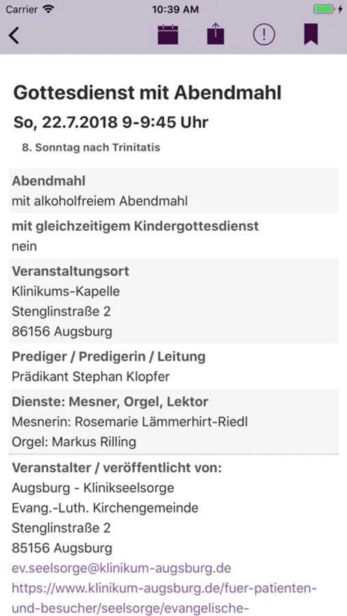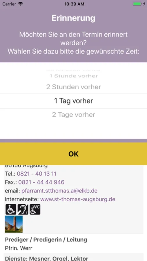 Veranstaltungen können geteilt und in den eigenen Kalender als Termine übernommen werden. Sie können sich an Termine über Push-Nachrichten erinnern lassen.