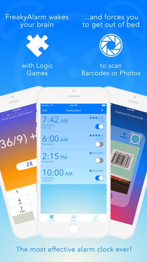 The most effective alarm clock ever! FreakyAlarm wakes your brain and forces you to get out of bed. One mission – to wake you up at any cost!