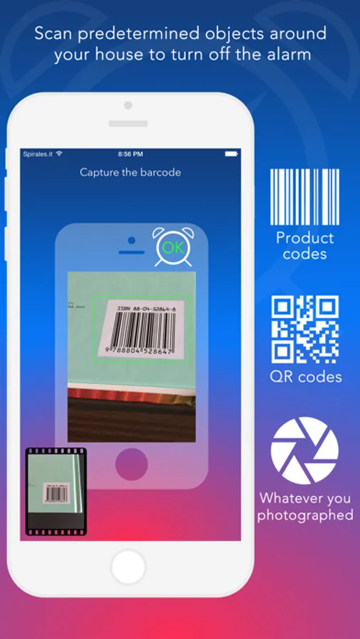 The alarm will not stop ringing until you solve a series of logic games and scan predetermined objects around your house (a product barcode, a QR code or a photograph of something). DON'T TRY TO RESIST! FreakyAlarm lives in the background to hunt the sleepyheads!