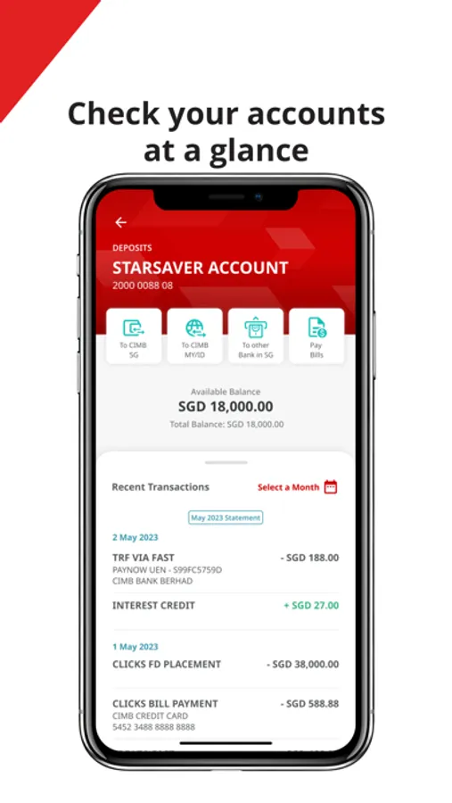 Bank simply and securely with Face ID, Biometrics Login and Digital Token. Accounts at a glance and quick-links to actions you do frequently. More self-services tool for your Clicks access - you can now use Singpass Face Verification, Credit Card/ ATM Card and PIN to sign up, change password or unlock access.