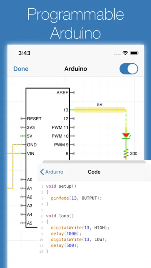 iCircuit is the premier iPad and iPhone app for designing and experimenting with circuits and Arduinos. Its advanced simulation engine can handle both analog and digital circuits and features realtime always-on analysis. It is the perfect companion to students, hobbyists, and engineers.