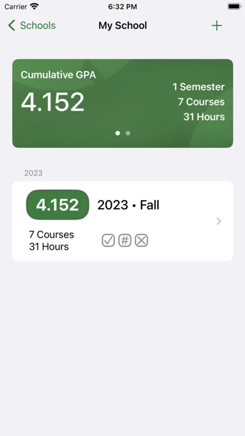 • As you add semesters and courses Fourpoint will provide you quick and accurate GPA results.