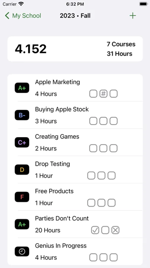 Tap '+' in the upper-right corner to add a semester. Tap it again to add courses.