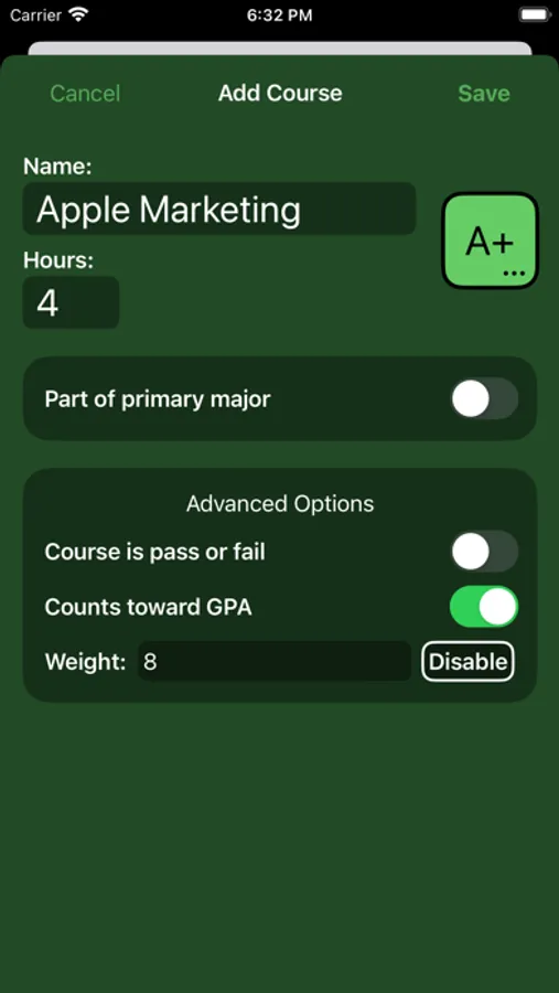 • Determine your major GPA! Courses can be included in your 'Major' in course settings. A secondary Major can be enabled in school settings!