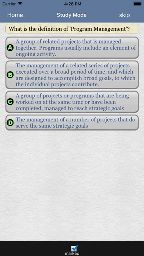 In the examination mode CAPM® Exam Trainer works like the exam software used in the real exam.