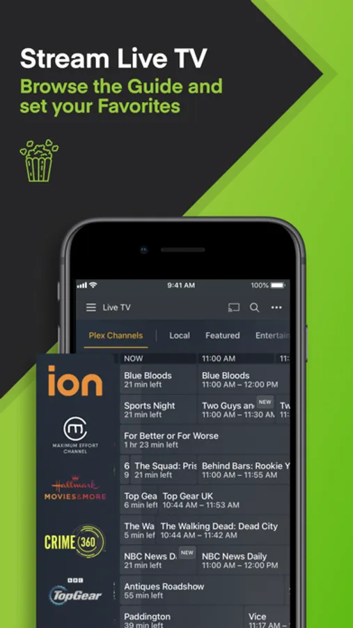 Dive into over 600 channels of top TV programming such as FOX Sports, PBS Antiques Roadshow, and more! Explore favorites like True Crime Now, Game Show Central, and TED when you download Plex today.