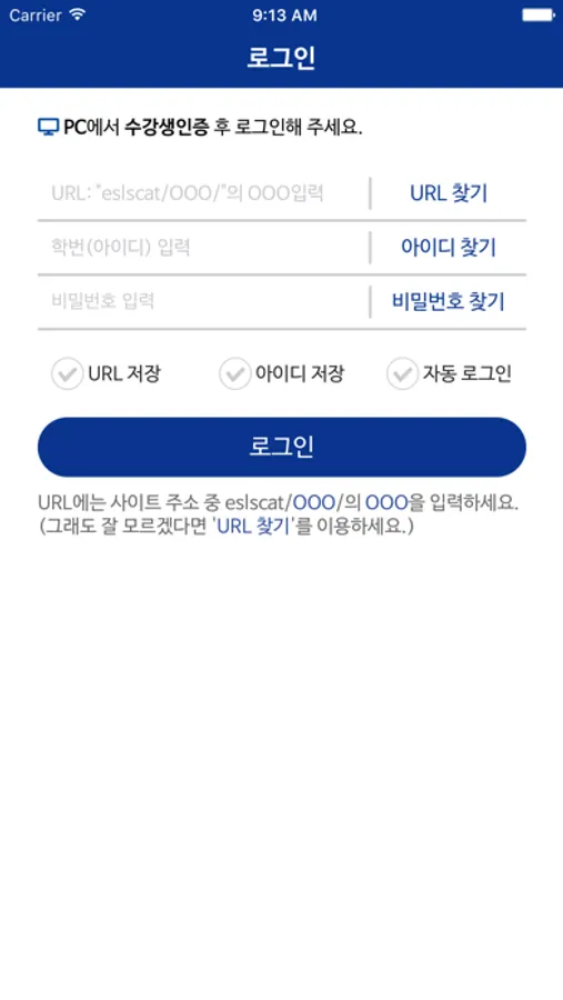 - 아이디/비밀번호 입력 : 웹 수강생등록 및