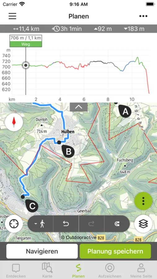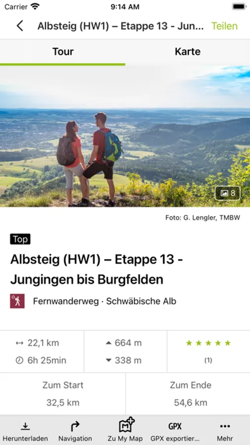 Wenn du eine Rad-, Wander- oder Laufstrecke aufzeichnest, kannst du dein Workout in Apple Health speichern. Daten aus HealthKit werden nicht für Marketing oder Werbezwecke genutzt.