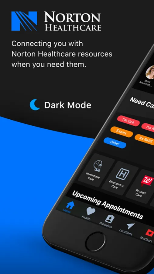 The Norton Healthcare Mobile app offers convenient care access, health management, nutrition tracking, system updates and more at your fingertips. Key features include: