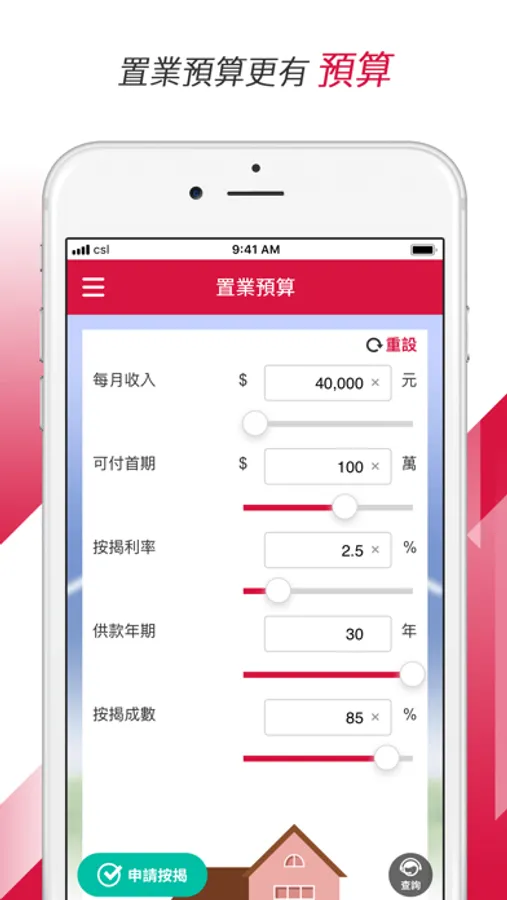 置業預算 - 只需輸入簡單資料,即時為您進行壓力測試,讓您了解自己可負擔樓價,更有預算地置業。