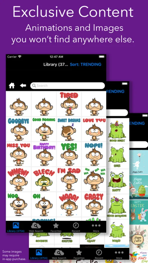 ● QUICK SEARCH for ANY specific term, such as "Fathers Day," "Good morning," "I love you," "Crying," etc., and be shown HUNDREDS of animations to choose from.