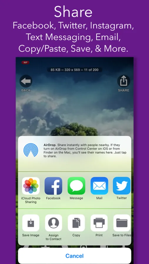● SEND using MMS Text Messaging, Email, Facebook, Twitter, Instagram, and more.