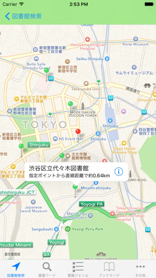 This application can search for the library and the book on Japan.