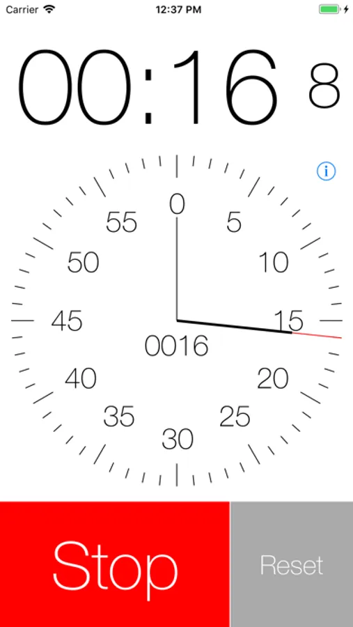 In the center of the clock face, the total number of seconds are shown. This is useful when the total number of seconds are required rather than minutes and seconds, e.g. for psychological assessments.
