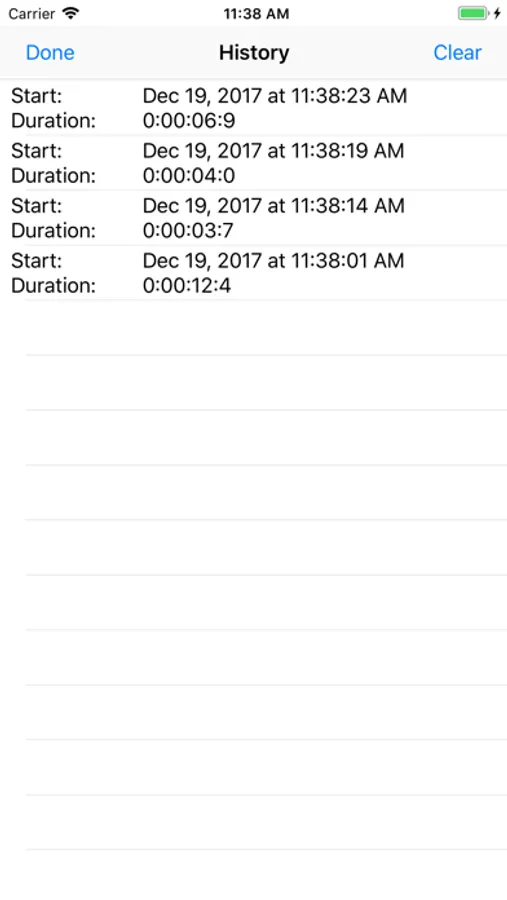 A history-log is available as an in-app purchase. Start time and duration of the previous timings are logged (max. 500). Even timings made before the in-app purchase will be available after the purchase. The same in-app purchase also unlocks landscape mode for the stopwatch.