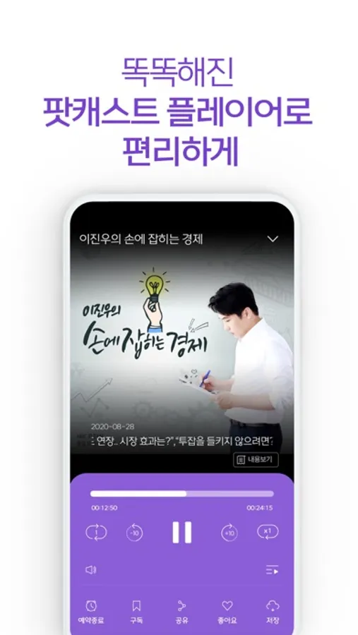 5. 팟캐스트 재생 중 구간이동, 앞뒤 10초 이동, 속도 제어 등 다양한 기능 제공