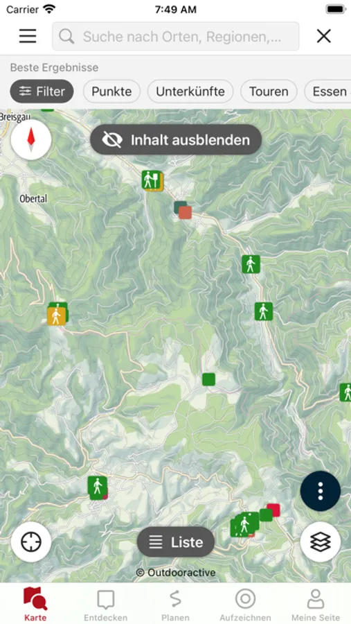 Damit Sie sich schnelle einen Überblick verschaffen können, zeigt ihnen die App bei eingeschaltetem GPS das Tourenangebot in der näheren Umgebung
