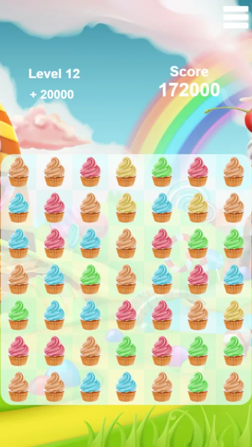 - Use the special white cupcake with sprinkles to remove all cupcakes of the same tone from the board.