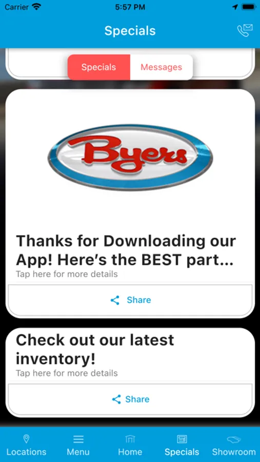 In addition, all the standard MLink App features are also here like: Call and email each department, get directions, view operating hours, get quotes on vehicles, order parts, etc etc…