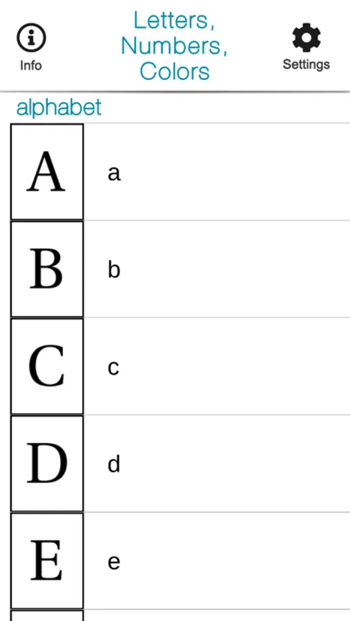 SmallTalk Letters, Numbers, Colors provides a series of speech exercise videos, each showing the tongue and lip movements necessary to produce the 26 letters of the English alphabet, numbers 1–20, and primary colors.