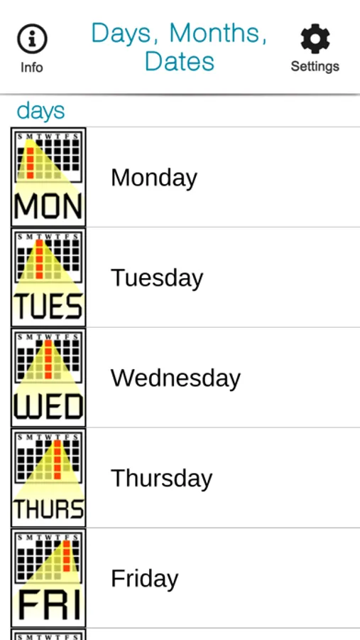 SmallTalk Days, Month, Dates provides a series of speech exercise videos, each showing the tongue and lip movements necessary to produce the days of the week, months of the year, and ordinal numbers 1st through 31st.
