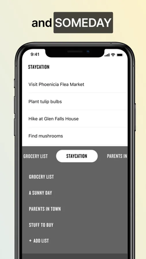 - Stash ideas, bucket list items, and plans for later with our unlimited Someday lists.