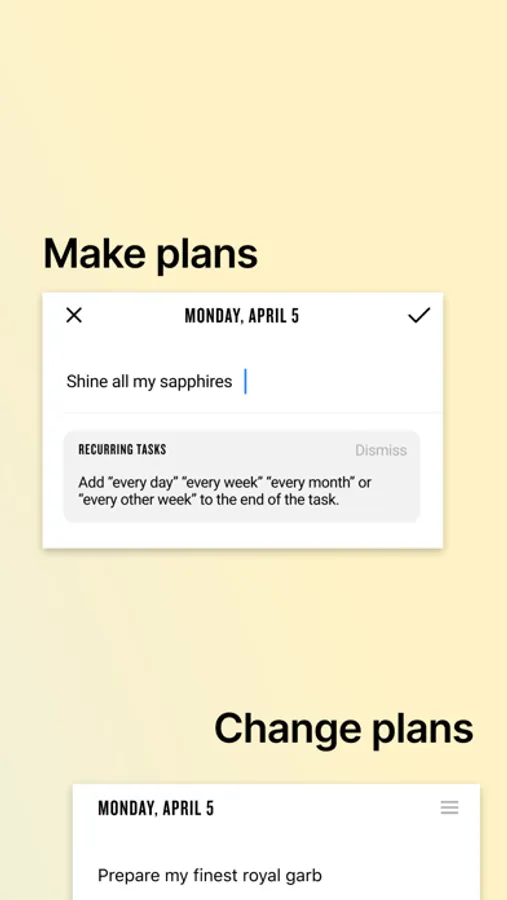 - Recurring to-dos for those things you need to do every day, every week, every month, and so on...