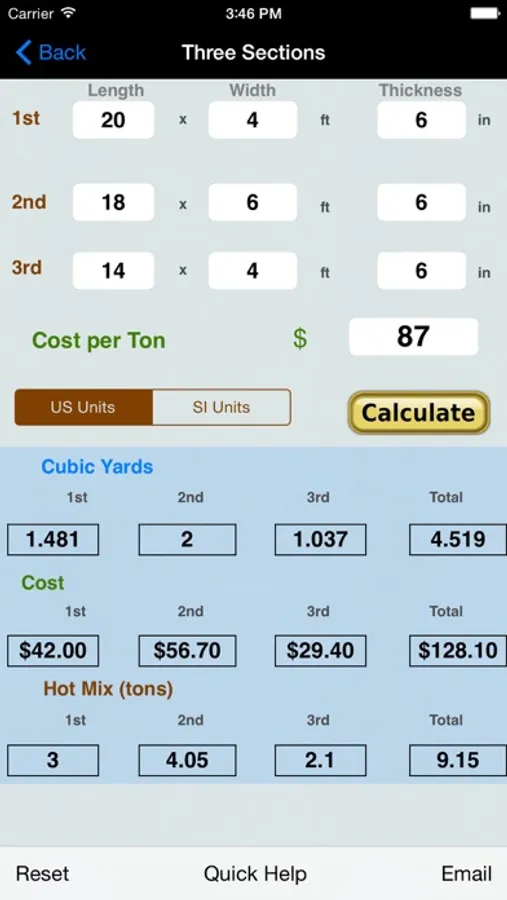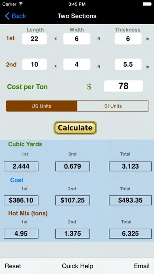 NOTE: In this app a Ton is exactly 2,000 lbs.