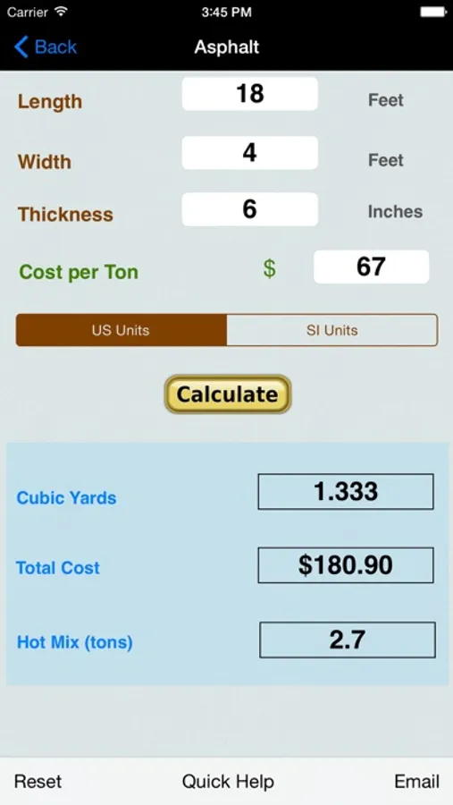 The Asphalt Calculator+ is an app which consists of calculators and solvers to help anybody looking to get some work done estimate costs, sizes, and materials amount as well as prices.